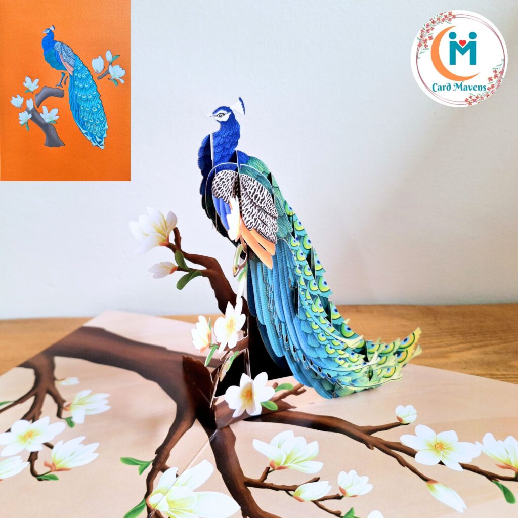 3D Birthday Pop Up Card Anniversary Mother’s Day Card Peacock Magnolia